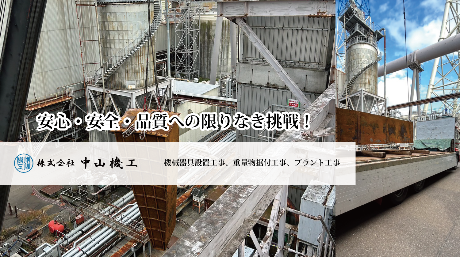 株式会社中山機工は機械器具設置工事、重量物据付工事、プラント工事を主に事業展開している富山の会社です。